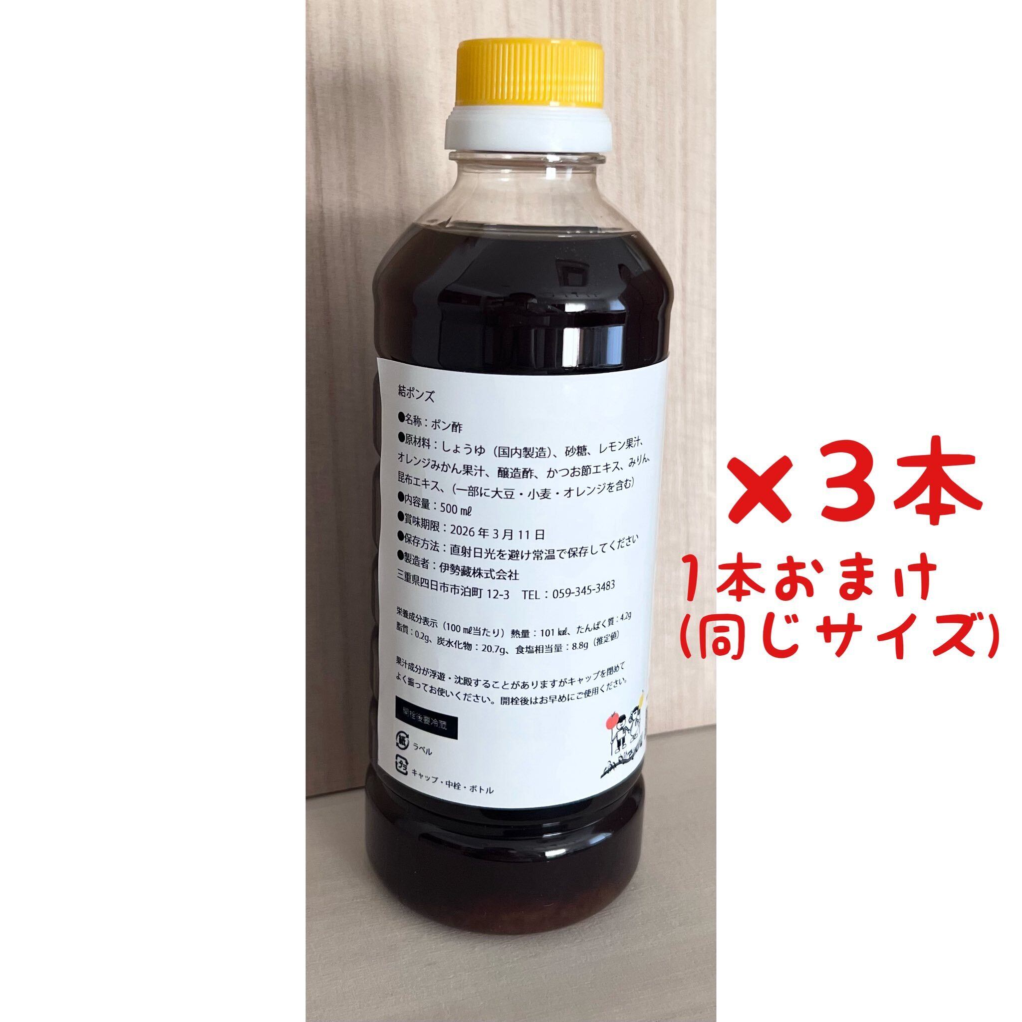 まだ知名度の少ない結ポンズの拡散にご協力いただける方向けに、結ポンズのファンの皆様が、お友達、ご家族、ご親族、仕事先の方々にプレゼントしていただきやすいよう、3本ご購入ごとに1本プレゼント♡という企画を開催させていただいております!200mlと500mlと両方ございますのでお選びいただく際にご注意願いますm(._.)m